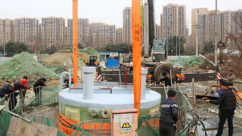 明珠泵業(yè)3.8米*16.3米大型一體化預(yù)制泵站成都火車(chē)西站雨污水改造項(xiàng)目實(shí)地安裝現(xiàn)場(chǎng)!