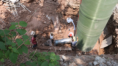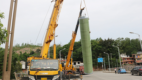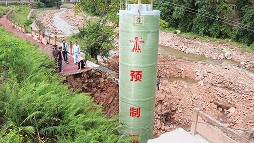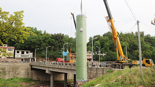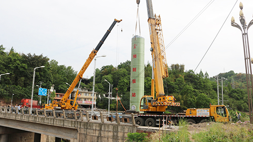 我司大型預(yù)制泵站應(yīng)用安裝于雅安對(duì)巖鎮(zhèn)雨污水收集提升工程,安裝現(xiàn)場(chǎng)!