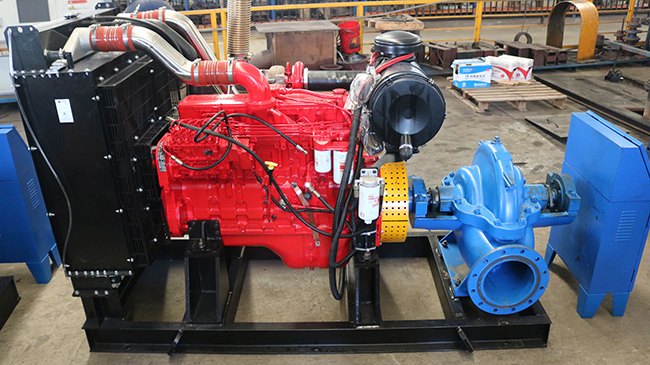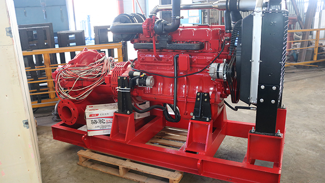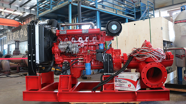 我司柴油機中開消防泵組生產(chǎn)檢測完成應(yīng)用噴淋滅火建設(shè)
