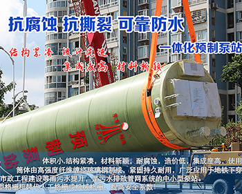 預(yù)制泵站是我公司吸收國內(nèi)外**技術(shù)的基礎(chǔ)上研發(fā)而成的集成式預(yù)制泵站。該泵站的筒體采用強(qiáng)化玻璃鋼自動(dòng)化纏繞澆鑄而成。內(nèi)部的水泵、管路、閥門、儀表、控制設(shè)備、樓梯以及其它用戶所需要的附件均由本公司成套提供,并安裝完畢后出廠。泵井內(nèi)自帶維修平臺及格柵粉碎機(jī),是一種使用方便,質(zhì)量可靠,土建工作量小,成本較低的新型一體化泵站設(shè)備,容積優(yōu)化是其顯著的特征,可以作為中小型混凝土泵站的**品。